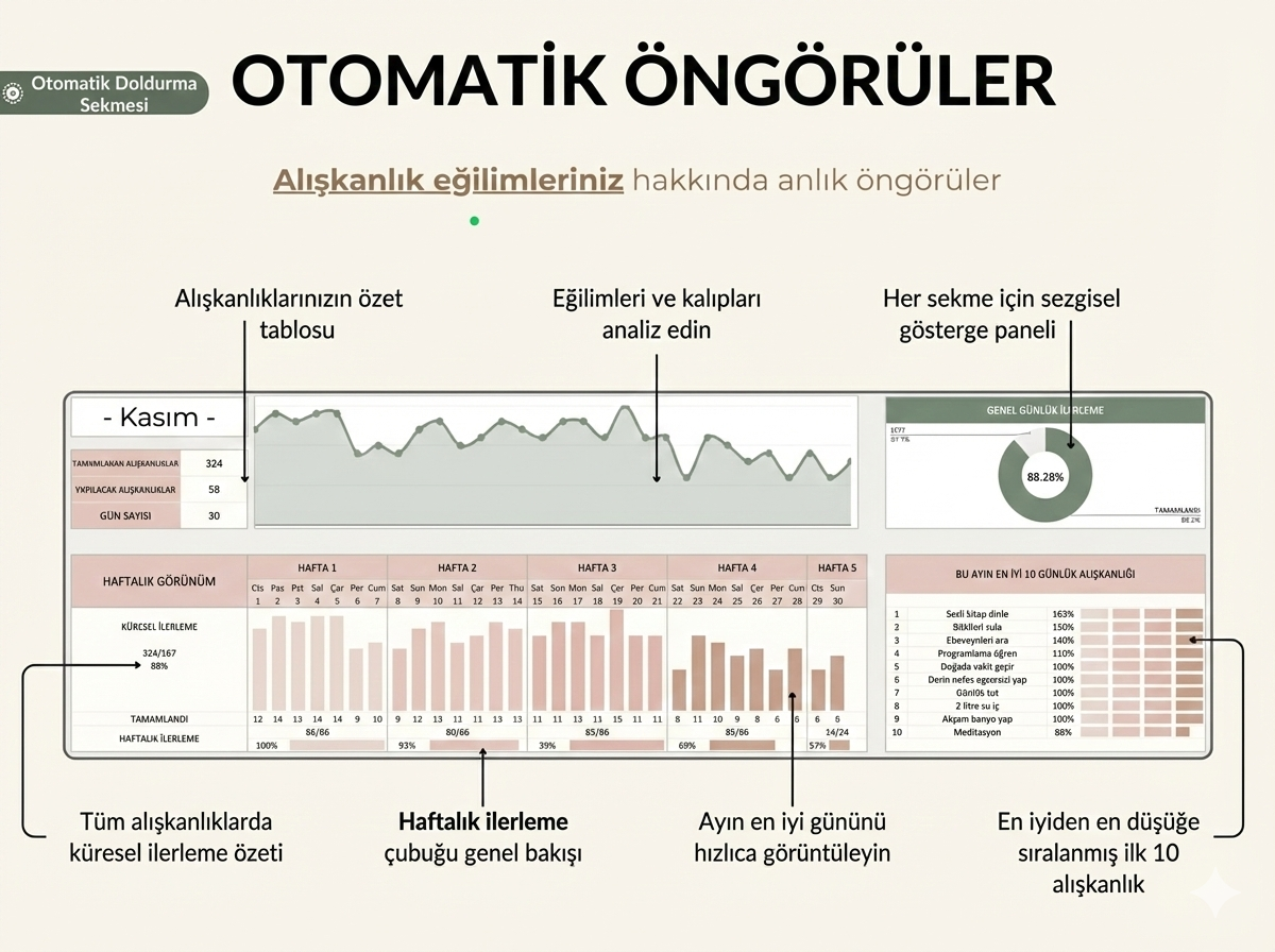 Excelden nefret eden biri olarak söylüyorum, bu bambaşka bir şey. Otomatik hesaplaması hayat kurtarıcı. 2026 hedeflerimi şimdiden girdim, motivasyon tavan. 🔥